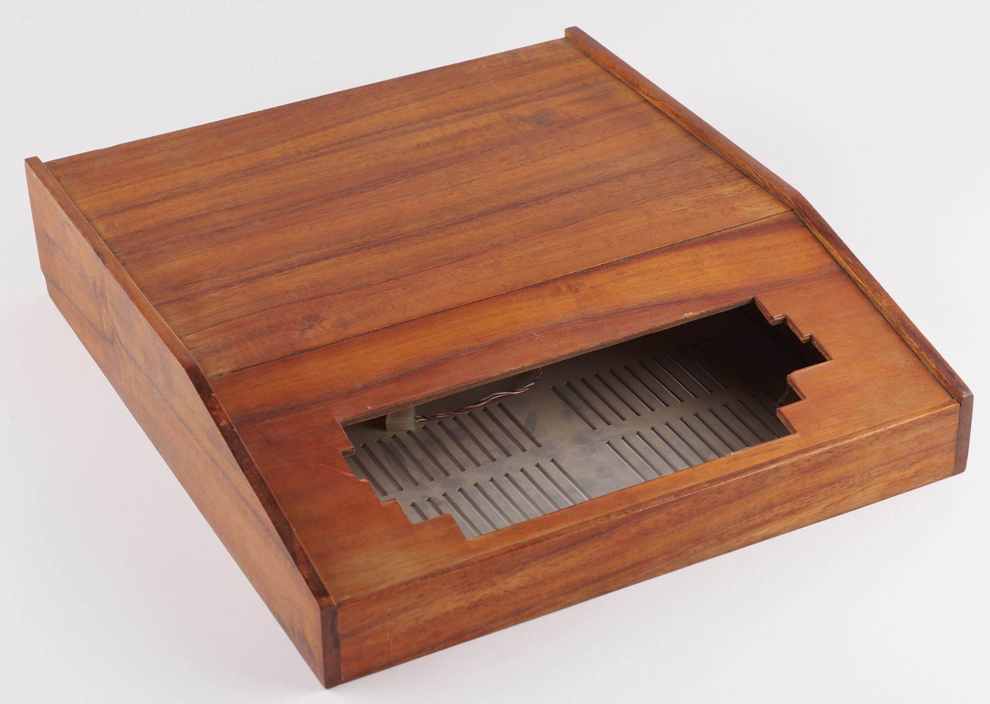 In addition, there exists another case that was once owned by Steve Jobs. In January 2026, this enclosure was sold at auction for USD 254,375. It differs from other Byte Shop cases in its internal construction: the base is not made of wood but of metal, resembling the base of an Apple II enclosure. According to the auction house, this enclosure was held by John Chovanec, Steve Jobs’s stepbrother.